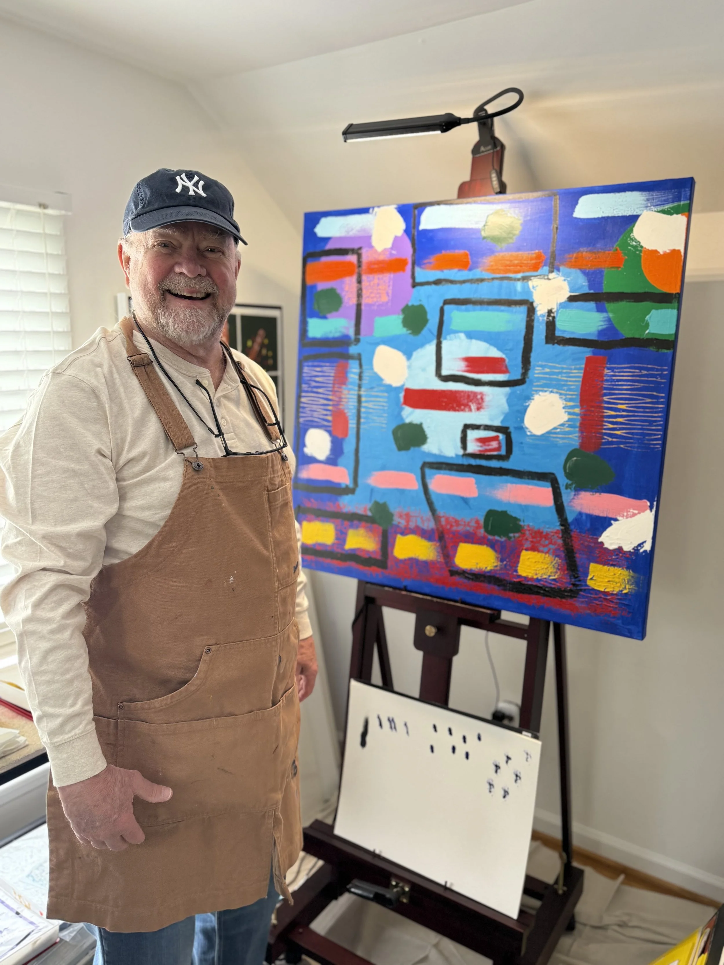 A former philosophy professor, attorney, and healthcare executive, the artist brings a lifetime of inquiry to the canvas. After decades spent working in language, law, and systems of care, retirement opened space for a different kind of thinking—one that unfolds visually rather than verbally.